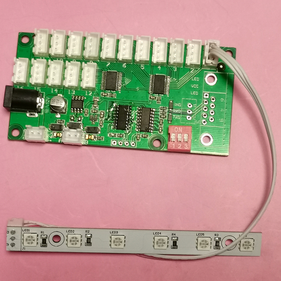 LED指標燈控制板12V直流供電,采用RS485通訊,集成撥碼開關(guān),板子單獨使用,也可經(jīng)過調(diào)節(jié)撥碼開關(guān)多片板并聯(lián)使用,輸出32路接口,可接5V-12V之間的LED指示燈,控制板可應用到貨架上指示貨架倉位,用到終端機上面做為功能指示,用到生產(chǎn)流水線提示工作崗位等。