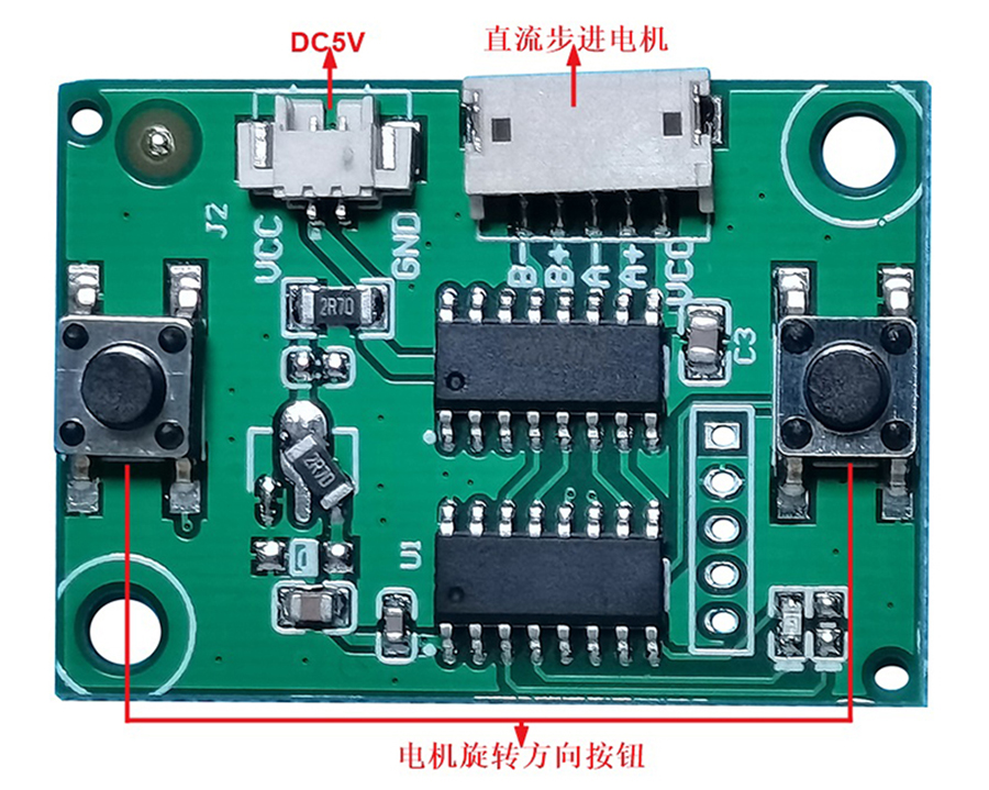 微型直流步進(jìn)電機(jī)驅(qū)動控制板采用直流5V供電,手動調(diào)試電機(jī)旋轉(zhuǎn)方向!我公司開發(fā)此電機(jī)驅(qū)動控制主要用在終端機(jī)設(shè)備中,用于下上調(diào)節(jié)攝像頭拍攝高度;同時用于其它可以旋轉(zhuǎn)的電子設(shè)備當(dāng)中。