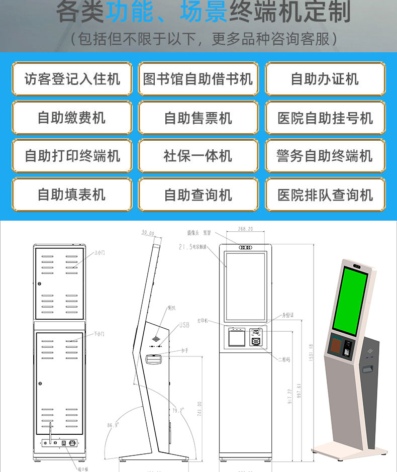 立式觸摸一體機(jī)訪客登記排隊(duì)叫號(hào)政務(wù)大廳醫(yī)療掛號(hào)繳費(fèi)智能終端機(jī)系統(tǒng)軟件開發(fā)