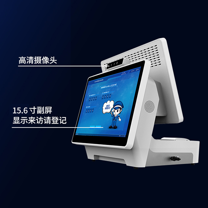 雙屏設(shè)計**:這種設(shè)備通常有一個主屏幕和一個副屏幕。主屏幕用于顯示訪客登記界面,供訪客進(jìn)行操作,而副屏幕可以顯示其他信息,如企業(yè)宣傳、安全提示或與主屏幕同步的登記信息,以提供更好的用戶體驗。