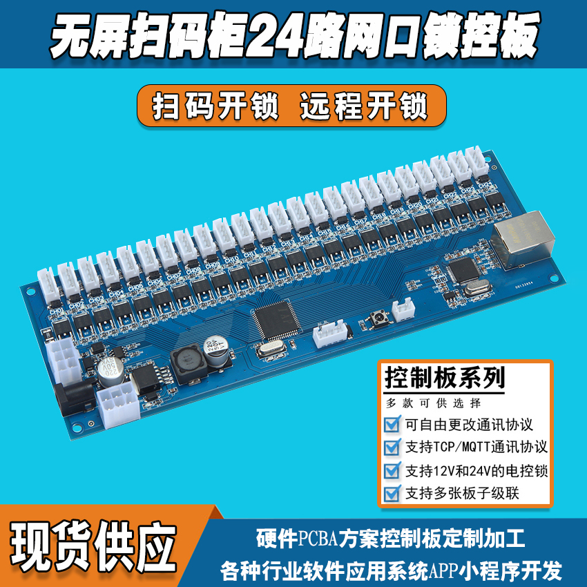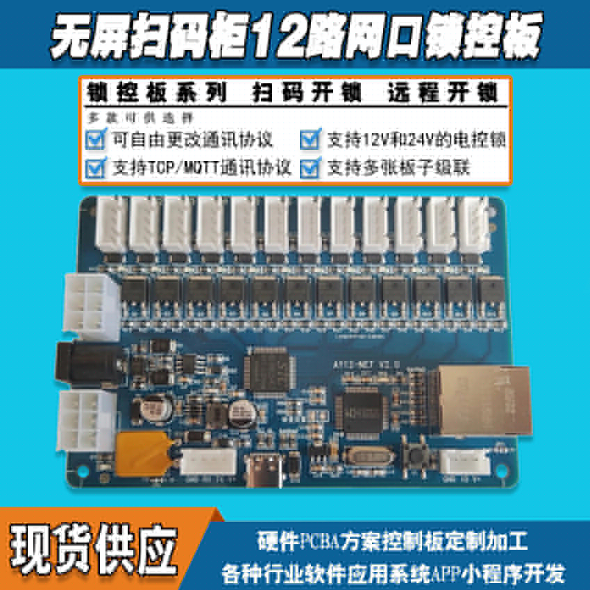 無屏掃碼智能柜網(wǎng)口鎖控板工廠現(xiàn)貨供應(yīng)支持定制軟件管理系統(tǒng)小程序按需開發(fā)開發(fā)格子柜電磁鎖控制按需定制 免費(fèi)開發(fā)工業(yè)控制 智能電器物聯(lián)家居主控PCBA方案硬件電路板